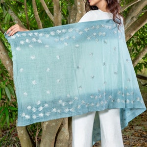 Denim Floral Embroidered Thick Merino Wool Scarf Shawl Wrap Stole 28×76”Inches