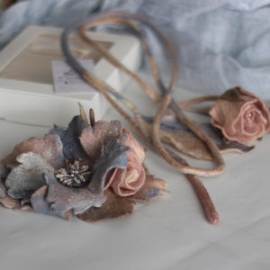 Felted Wool Flower Brooch, Pastel Scarf Necklace, Handmade Floral Belt